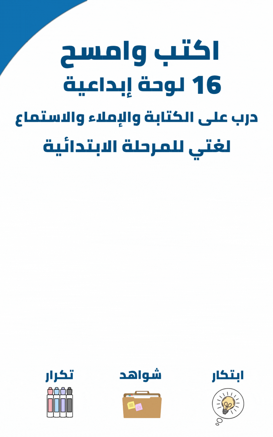 ٨ لوحات تعليمية بـ١٦ وجهًا مختلفًا، قابلة للكتابة والمسح، تجمع بين المتعة والتكرار والإتقان.